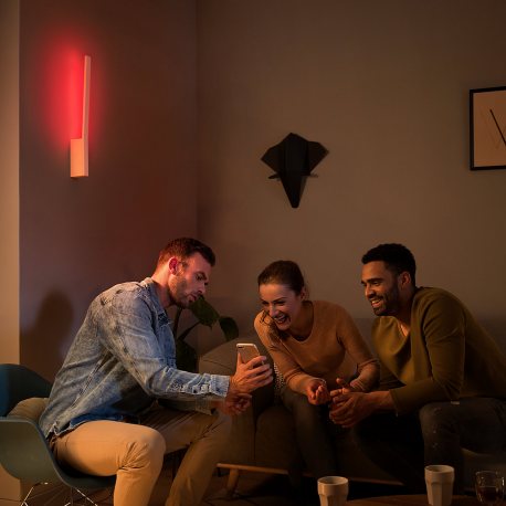 Kinkiet Liane w kolorze białym dzięki wbudowanemu źródłu światła LED daje białe i kolorowe światło. Stwórz wyjątkowy nastrój w domu dzięki 16 mln kolorów i szerokiej palecie białego światła. Łatwe sterowanie przez aplikację mobilną (połączenie Bluetooth) lub głosowo oraz możliwość podłączenia do systemu inteligentnego oświetlenie Philips Hue.