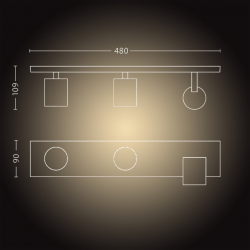 Philips Hue White ambiance Runner to potrójne oświetlenie punktowe w kolorze białym. Dzięki regulowanym reflektorom lampa może oświetlić każdy zakątek pomieszczenia. Oprawa świeci białym światłem (istnieje możliwość zmiany temperatury barwowej od ciepłej do zimnej).Lampa pozwala na użycie wbudowanych aranżacji świetlnych ułatwiających wykonywanie codziennych czynności. Lampą można sterować za pomocą aplikacji Philips Hue Bluetooth, dołączonego regulatora przyciemniania Hue Dimmer switch lub mostka Philis Hue. Dodając mostek możesz uzyskać dostęp do większej liczby funkcji inteligentnego oświetlenia.