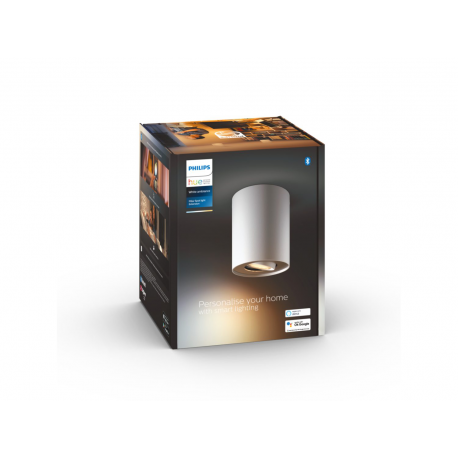 Pojedyncze oświetlenie punktowe w białej oprawie Philips Hue White ambiance Pillar pozwoli Ci uzyskać białe światło o temperaturze barwowej od ciepłej do zimnej w dowolnym pomieszczeniu w Twoim domu. Steruj oświetleniem natychmiastowo za pomocą łącza Bluetooth lub dodaj mostek Hue Bridge, aby uzyskać dostęp do większej liczby funkcji inteligentnego oświetlenia.
