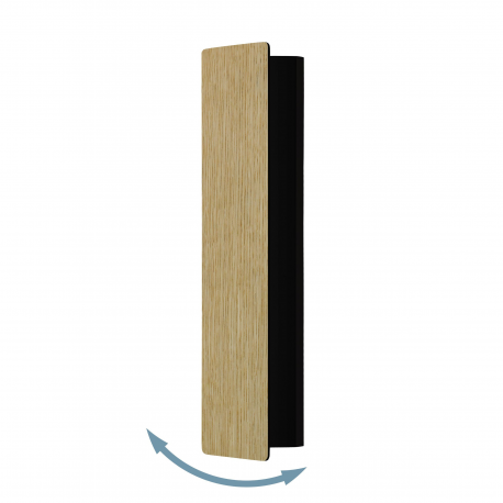Kinkiet LED ZUBIALDE jest wykonany z czarnego metalu i ma regulowany panel przedni, który został ozdobiony fornirem dębowym. Obrotowy ekran zapewnia przytulne, pośrednie światło i umożliwia indywidualną regulację światła. Zintegrowane diody LED zapewniają przyjemne, ciepłe, białe światło. Kinkiet idealnie wpisuje się w nowoczesny trend i oferuje minimalistyczne oświetlenie do każdego pomieszczenia - czy to w kuchni, salonie, sypialni, przedpokoju czy jadalni.