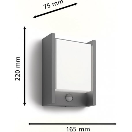Antracytowy kinkiet zewnętrzny LED Philips ARBOUR IR został wykonany z trwałego, odlewanego aluminium. Elegancka lampa pozwala na oświetlenie przestrzeni zewnetrznej za pomocą szerokiego strumienia rozproszonego, chłodnego białego światła. Lampa wyposażona w czujnik ruchu.