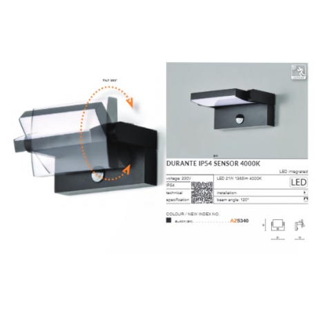 AZ5340 DURANTE IP54 SENSOR 4000K BK KINKIET ZEWNĘTRZNY Z CZUJNIKIEM RUCHU AZZARDO