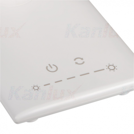 Kanlux PREDA to multifunkcyjna lampa biurkowa. Wyróżnia ją wysoki (jak dla lampek biurkowych) strumień świetlny - aż do 620 lumenów (model biały). Charakteryzuje się ona płynną zmianą barwy (suwak) i możliwością zmiany barwy światła. Cechą unikatową jest możliwość odchylenia ramienia lampy wokół własnej osi o 45 stopni. Lampa wyposażona jest w port USB, dzięki któremu naładujemy urządzenia mobilne. Tę lampę z powodzeniem zastosujesz do oświetlenia biurka ucznia lub większego miejsca pracy. Może mieć także zastosowanie w gabinetach kosmetycznych.