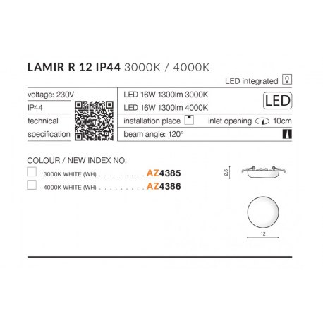 LAMIR 3000k R12 LAMPA WPUSZCZANA IP44 AZZARDO AZ4385