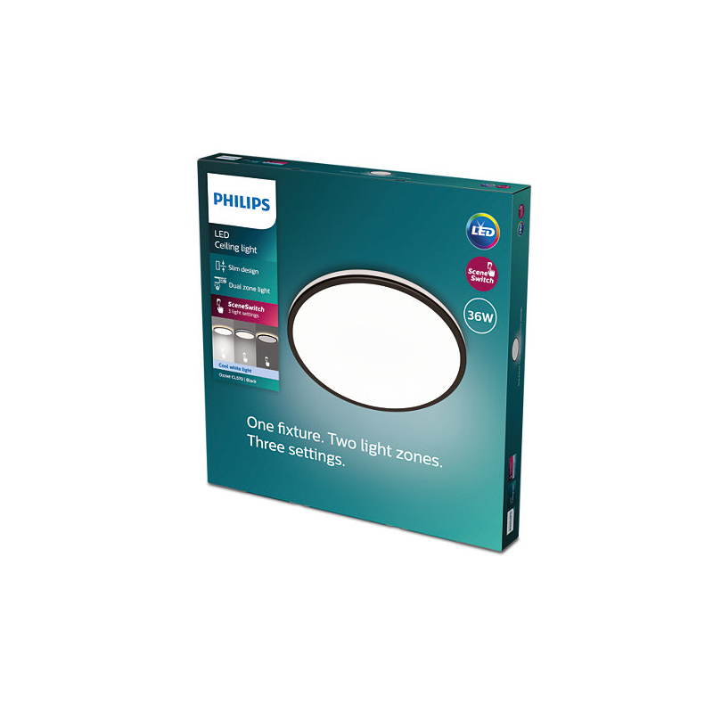 Zmiana nastroju w pomieszczeniu nigdy nie była tak prosta. Biała lampa sufitowa LED SceneSwitch z podwójną strefą światła marki Philips ułatwia tworzenie scen świetlnych w pomieszczeniach za pomocą trzech niepowtarzalnych ustawień. Połączenie oświetlenia głównego i lampy krawędziowej zapewnia idealne światło podczas spotkań, gdy chcesz się skupić i lub odpocząć. Produkt nie wymaga ściemniacza ani żadnej dodatkowej instalacji. Wystarczy jedynie istniejący włącznik światła.