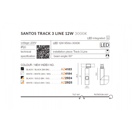 SANTOS LED LAMPA DO 3-fazowego SZYNOPRZEWODU AZZARDO AZ2924