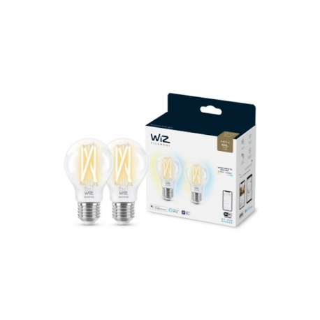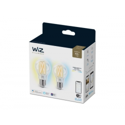 Inteligentne oświetlenie w stylu retro dzięki żarówce WiZ z widocznym spiralnym żarnikiem i trzonkiem E27, która może świecić ciepłym lub chłodnym światłem białym. Za pomocą aplikacji WiZ lub przy użyciu poleceń głosowych możesz przyciemniać i rozjaśniać światło lub korzystać z zaprogramowanych trybów oświetlenia w konfiguracjach Wi-Fi.