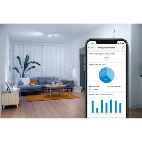 W aplikacji WiZ możesz zobaczyć, ile energii zużywają Twoje lampy. Za pomocą raportów dziennych i tygodniowych możesz łatwo kontrolować zużycie energii w domu.