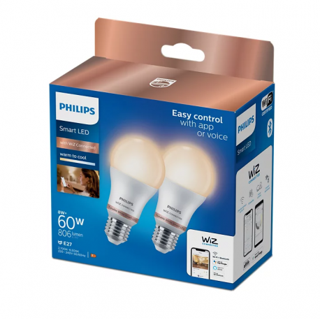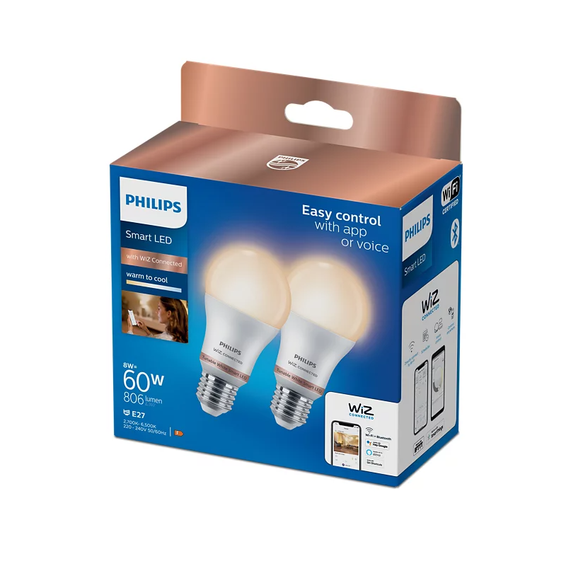 2-PACK Inteligentnych żarówek LED 8W A60 E27 8720169072336 sterowana aplikacją lub pilotem PHILIPS WiZ Connected 8719514372740